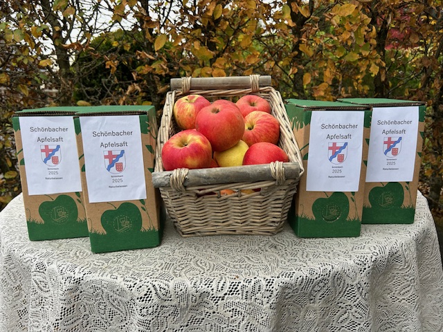 Zum Teil trugen die Apfelbäume in Schönbach in diesem Herbst reichlich Früchte, zum Teil aber auch gar nicht. Dennoch kann man mit der Ernte mehr als zufrieden sein. Selbst nicht alle guten Äpfel konnten verwertet werden. Statt in den sauren Apfel zu beißen wurden diese zu über 500 Liter köstlichen Apfelsaft gepresst: im Natur-Erlebnis-Zentrum Darscheid oder bei „Mein Apfel – mein Saft“ in Üxheim. Manch einer stellt Viez her, andere backen leckere Apfelkuchen, köstliche Apfelpfannkuchen oder verarbeiten es zu feinem Apfelmus. Die Spätleseäpfel allerdings sind fruchtiger und süßer und so auch zum reinen Verzehr ein Genuss. Selbst Pferde mögen diese Äpfel besonders gern. Sie verarbeiten diese weiter zu Pferdeäpfeln.